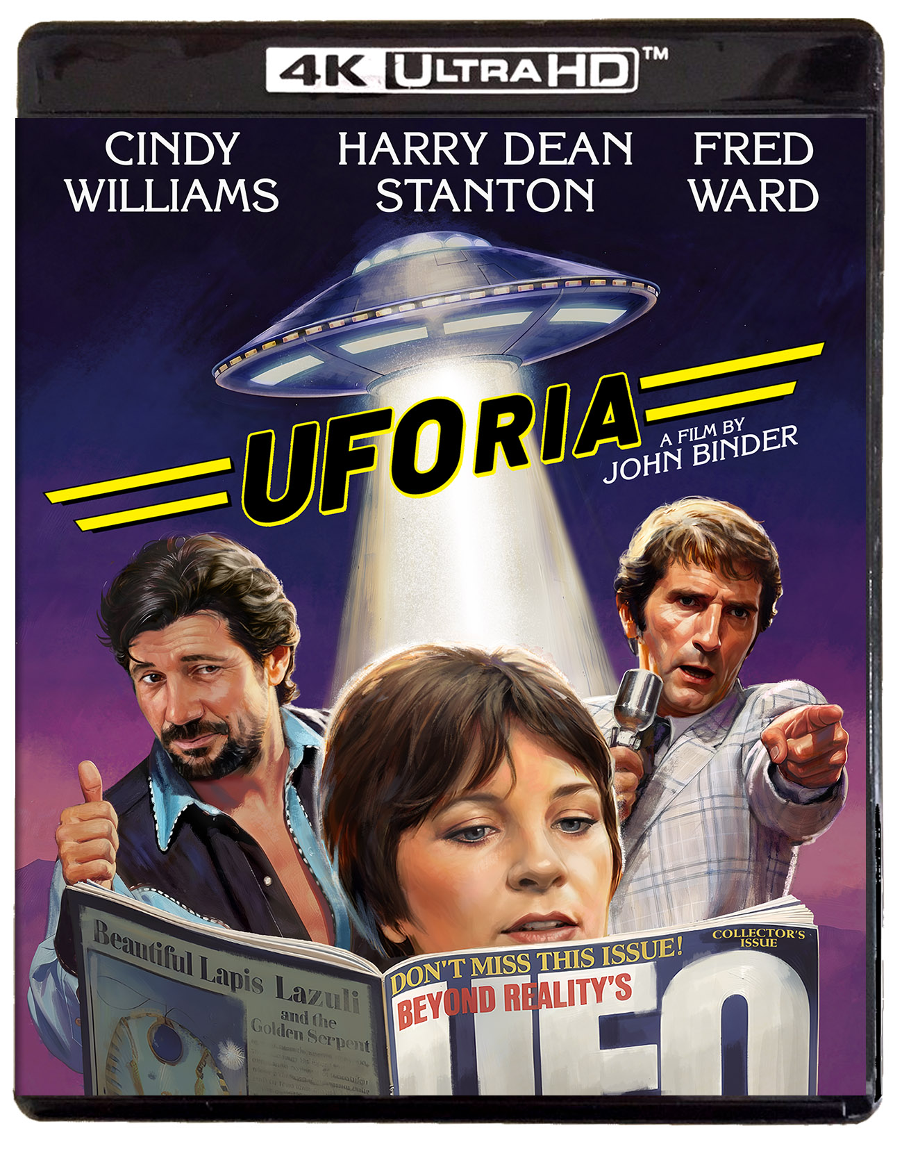 This offbeat romantic comedy shows what happens when a pair of not-so-good ole boys meet up with a down-home girl who believes in the power of UFOs. Cindy Williams (American Graffiti, Laverne & Shirley) is Arlene, a wacky revivalist who thinks that mankind will be saved by extraterrestrials. When her drifter boyfriend (Fred Ward, Remo Williams, Tremors) runs into his “preacher” friend Brother Bud (Harry Dean Stanton, Alien, Repo Man), the “Brother” decides there’s easy money to be made by charging admission to the predicted landing site. What they don’t count on is that Arlene’s vision may not be so crazy after all. It adds up to a “great and goofy” (Roger Ebert) look at country living and loving that’s packed with out-of-this-world humor. A rare sighting since its 1987 VHS release, the cult oddity UFOria finally arrives home again in a stellar new restoration!